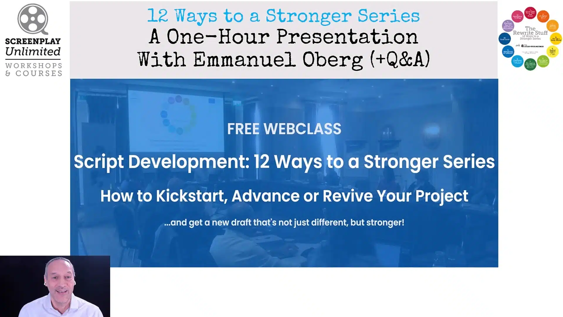 Thanks to the enthusiastic storytellers who joined us from around the world on the 9th of October, our 12 Ways to a Stronger Series webclass with Emmanuel Oberg was a great success! A free replay is available until the 28th of November — the deadline to apply for Stage 2 of our 2025-2026 Series Rewrite Programme for Screen Ireland, which is introduced at the end of the session, before the Q&A. Registered members simply need to login to access this replay, others only need to register with the website (it’s free).
